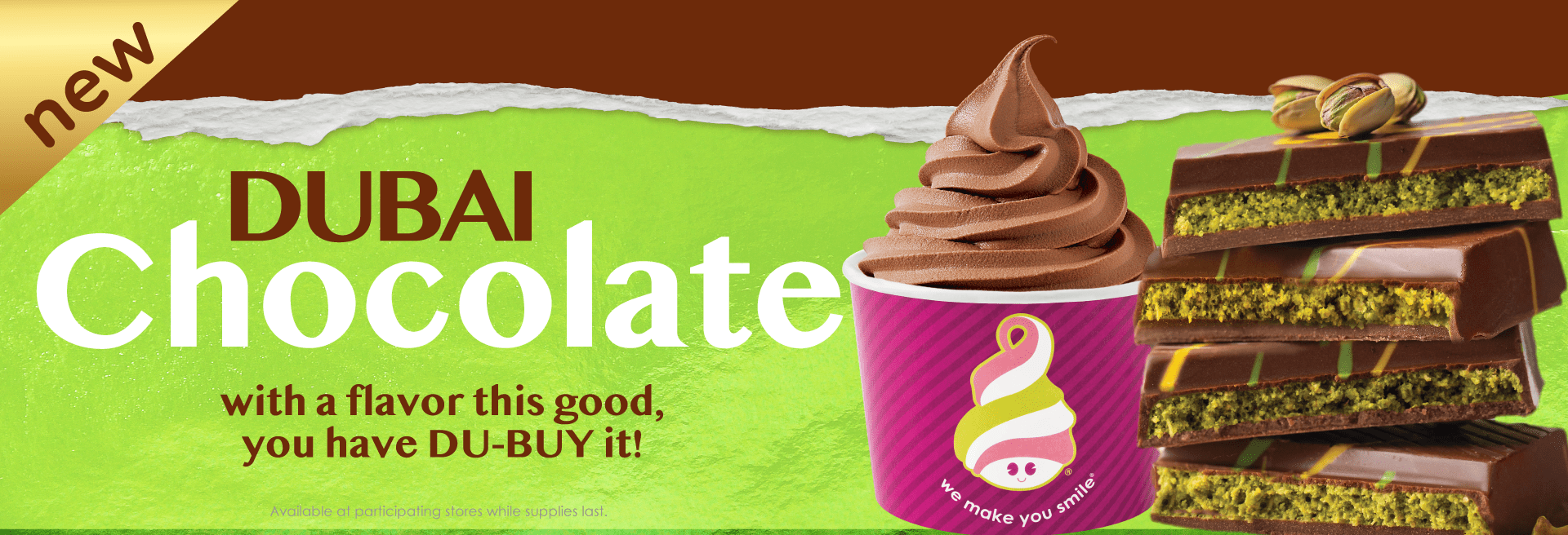 Rich, decadent chocolate meets creamy pistachio in our NEW Dubai Chocolate froyo – the viral sensation you have DU-BUY! Available now for a limited time at a Menchie’s near you!